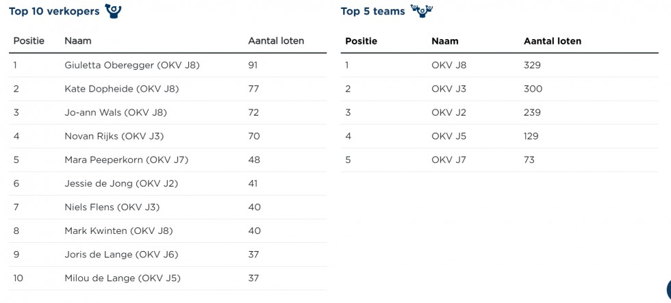 De absolute uitblinker is Giuletta Oberegger (OKV J8) met maar liefst 91 verkochte loten.